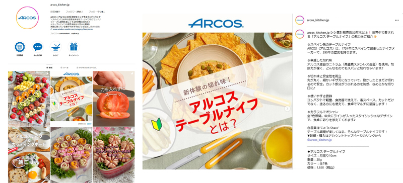 アルコスのSNSでは、アンバサダー施策も大きな柱。5名のInstagramアンバサダーが、それぞれの暮らしの中でナイフを紹介し、リアルな使い心地や気づきを発信しています。